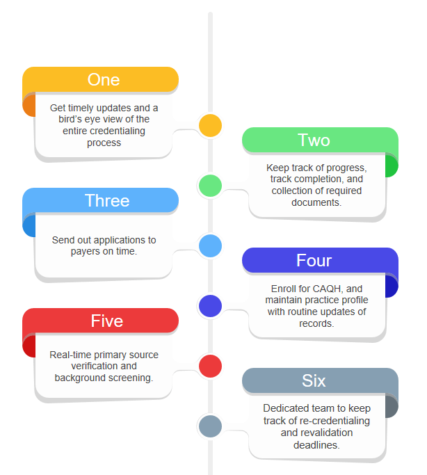 CureMB perceives that medical provider credentialing is a vital component of a healthcare facility’s operation. Our team of professionals maintain expertise in the provider credentialing process, including staying abreast of changes in the industry, credentialing trends, and payer requirements. As experts, we take on the credentialing process from start to finish. That means our team takes on all of the responsibilities that typically fall on your staff, freeing up your team to focus on more important tasks.CureMB can help you increase your credentialed payers, increase your patients, and maximize your market share. CureMB provider credentialing services ensure that your physician credentialing is completed correctly and timely. Our service offering includes Provider Credentialing, Medicare and Medicaid Enrollment, Insurance Contract Negotiations, Payer Fee Schedule Creation, and Telemedicine Credentialing. At CureMB, our team works with the provider to fill out the initial application, perform the due tasks required of the organization such as primary source verification, background screening, and coordinate with payers to support timely approval as well as expedite provider starts. All overseen by experienced, knowledgeable and professionals from the CureMB Team.